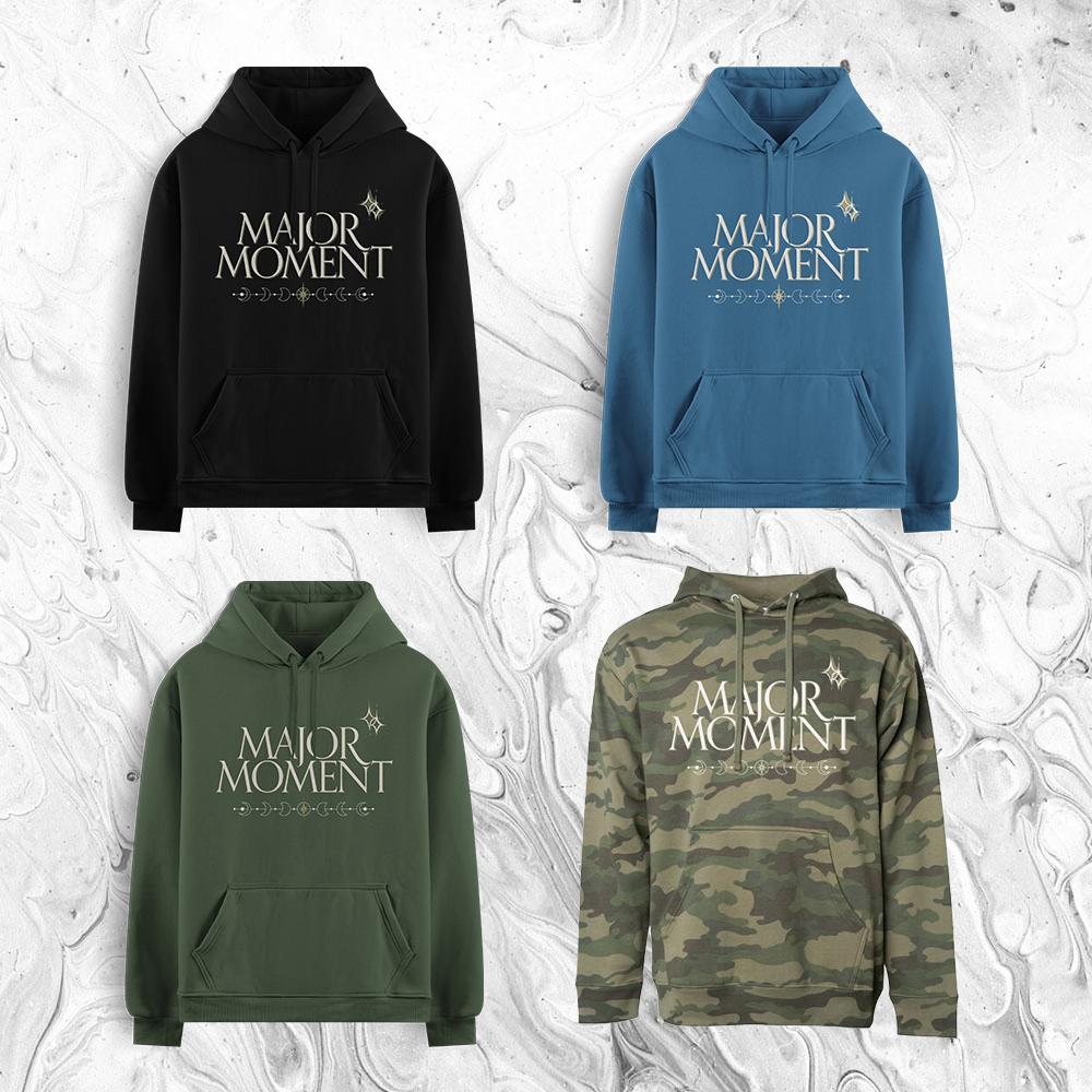 FINALLY IN STORE! Brand new super-comfy celestial hoodie with Major Moment logo.
