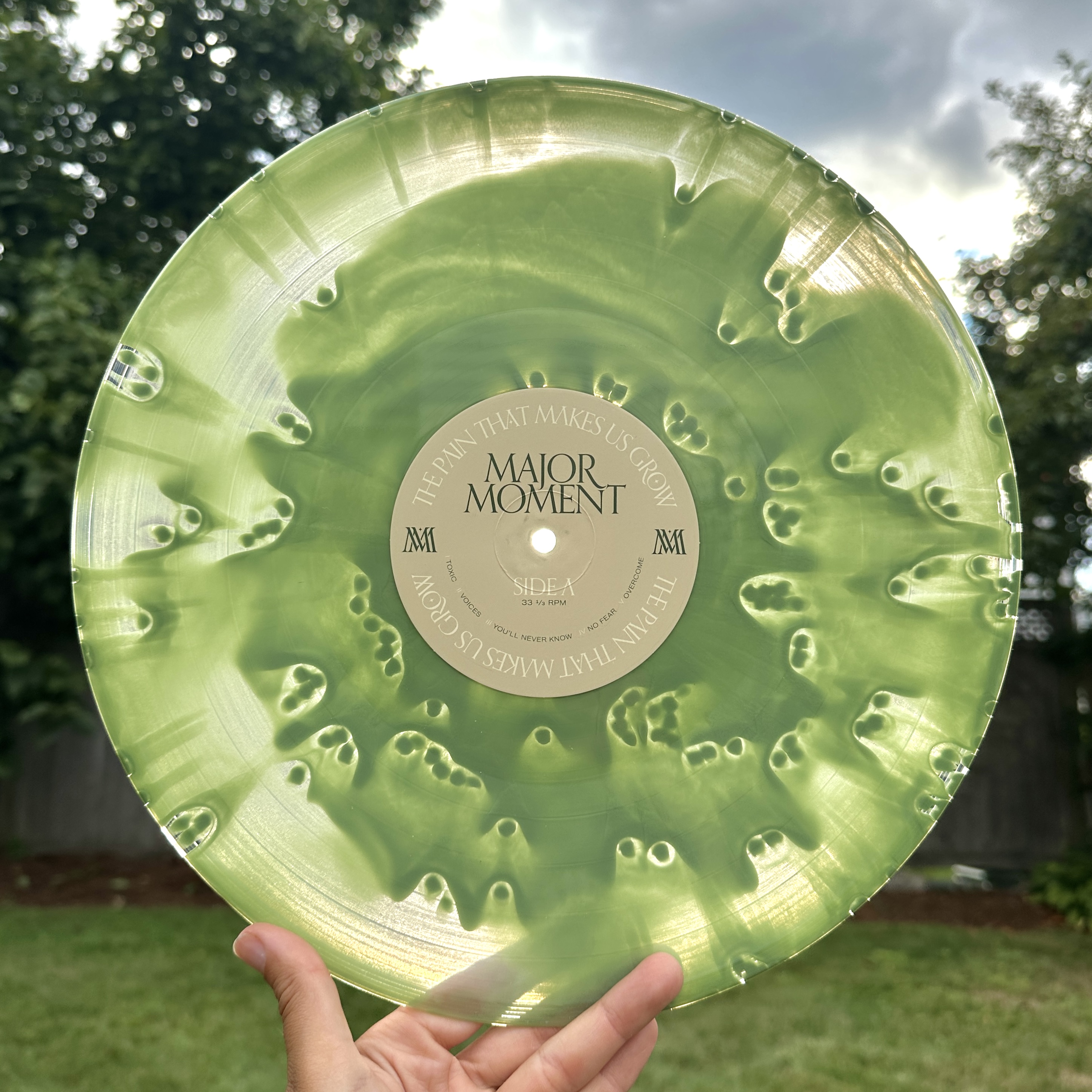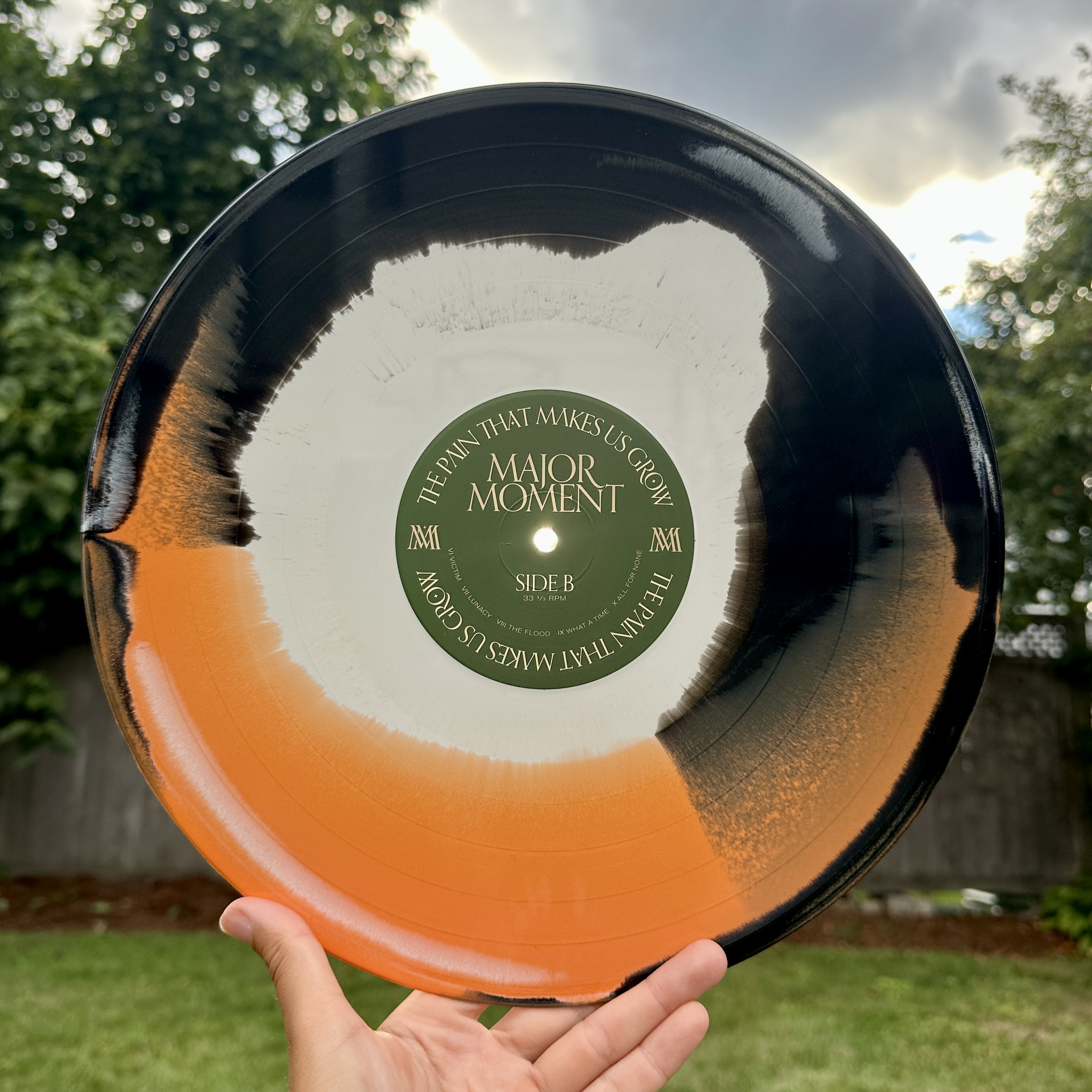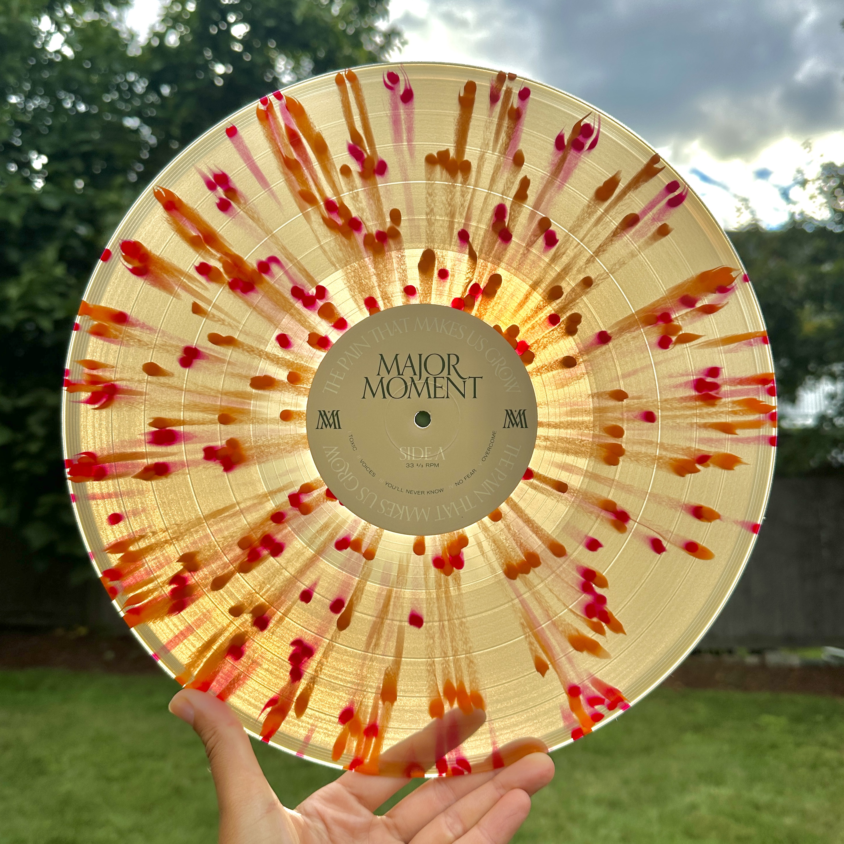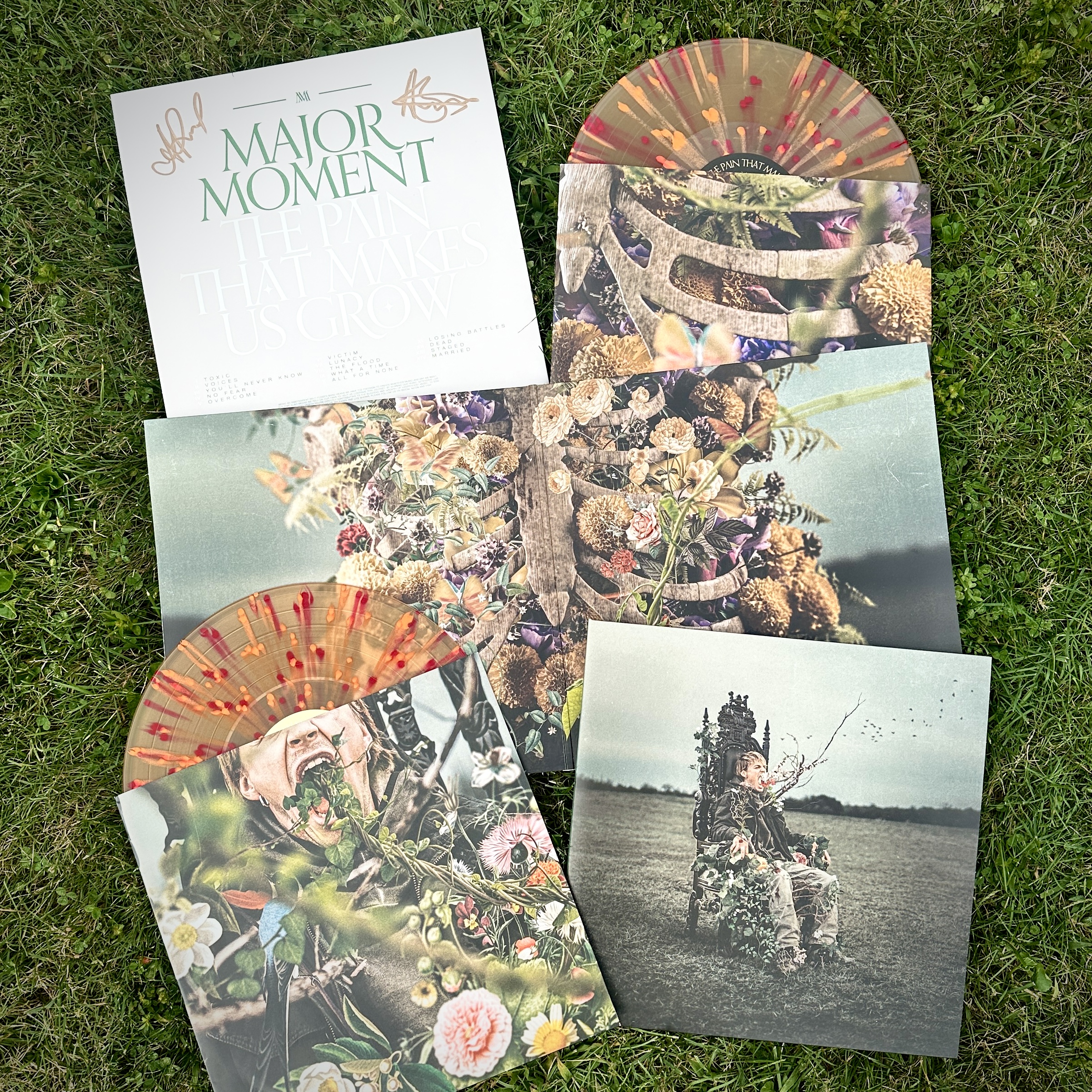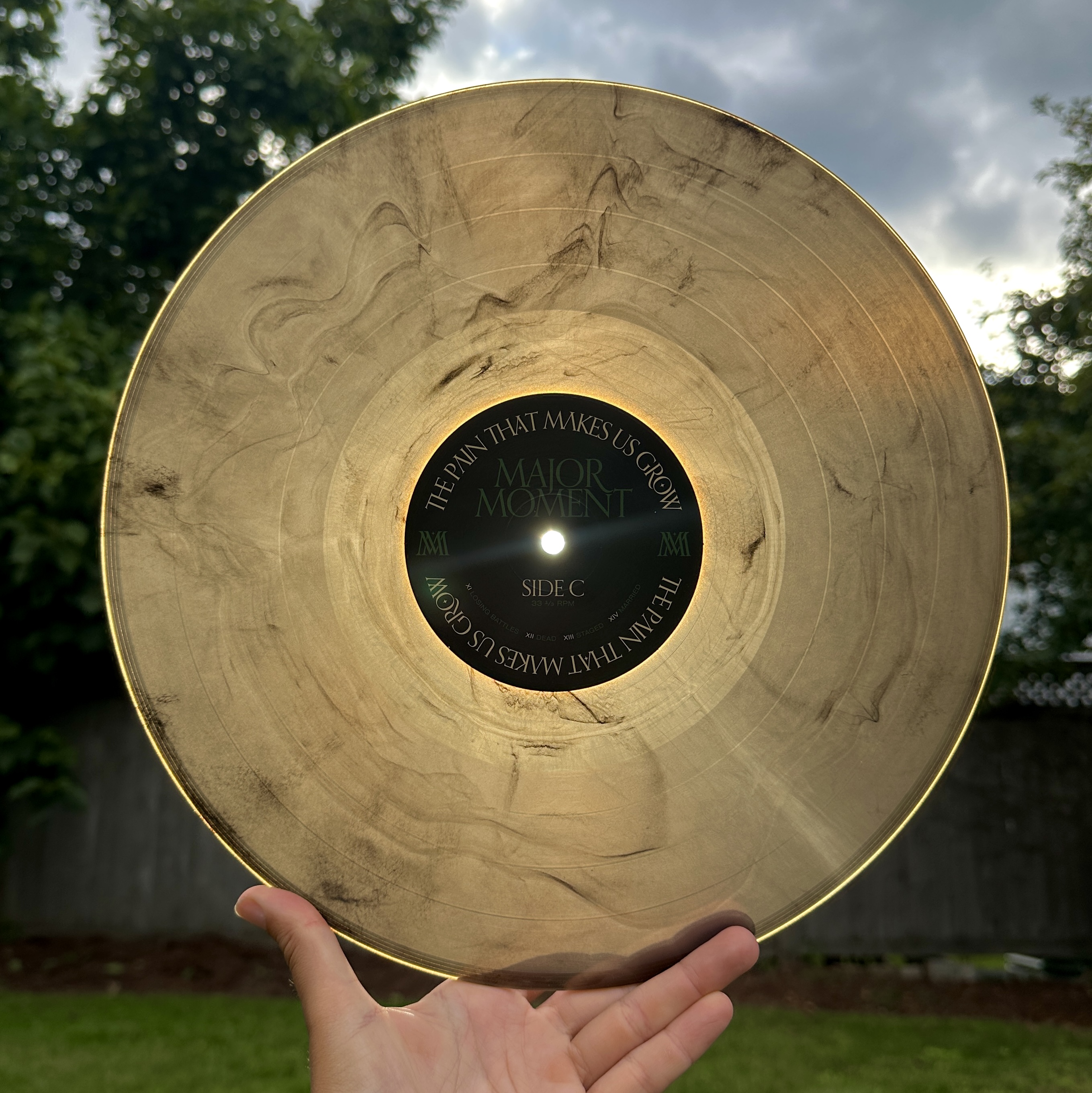 Get our full-length album called “The Pain That Makes Us Grow” on a 12″ Double Vinyl with a stunning etching design on side D, limited to only 99 copies per color variant! From mixing & mastering to design and the actual pressing – it’s been worked on by the top industry professionals ensuring the best quality record you can get!